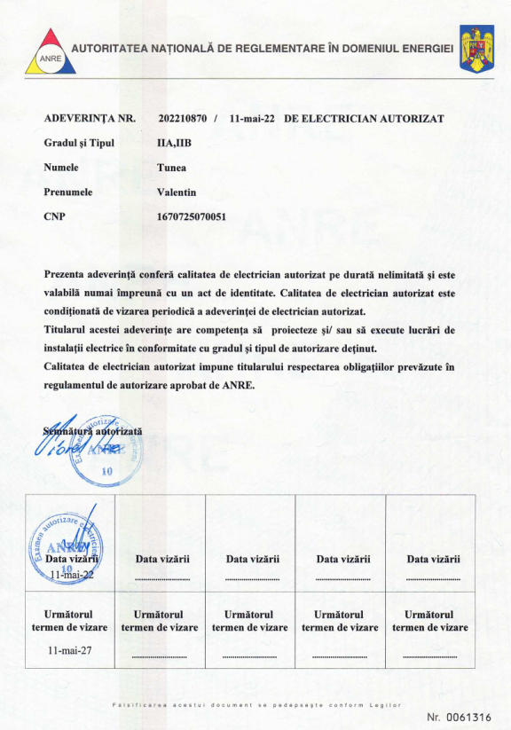 2T Electrovat este o firma cu personal autorizat ANRE 2A/2B, ce oferă servicii la cele mai înalte standarde europene.